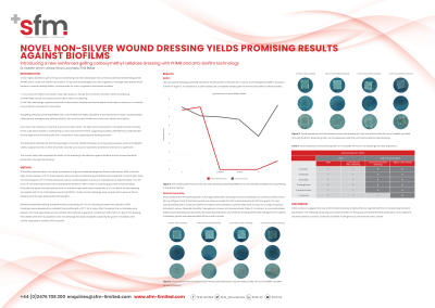 Introduction: A new, non-silver cellulose-based wound dressing has demonstrated to be effective against biofilms and preventing bacterial penetration. The fibres of the new dressing are coated with a novel antibiofilm formulation containing PHMB (polyhexanide).