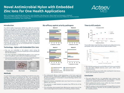 Introduction: The World Health Organization (WHO) has called for innovative solutions to the threat of antimicrobial resistance caused by multi-drug resistant superbugs. Zinc has the potential to address this urgent requirement due to its natural ability to eradicate microbes. A novel polymer based on high performance nylon that incorporates and maintains zinc in its ionic form was investigated against WHO priority pathogens. Zinc ions are embedded in the polymer matrix during production of nylon and are activated upon moisture absorption from the atmosphere. This long-lasting, skin-friendly technology has the potential to permanently protect wound care products from bacteria, therefore improving patient outcomes.