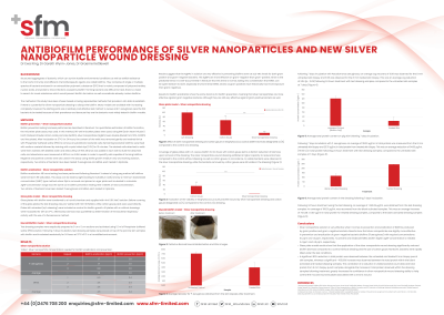 Discussion: Silver nanoparticles are more effective on gram-negative than gram-positive bacteria, which is the predicted trend. The activity of the dressing demonstrates that the biofilm is absorbed into the dressing where the silver present has an antimicrobial effect against the biofilm.