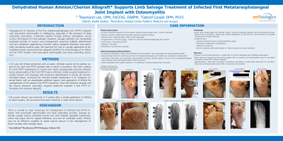 (CS-070) Dehydrated Human Amnion/Chorion Allograft Supports Limb Salvage Treatment of Infected First Metatarsophalangeal Joint Implant with Osteomyelitis
