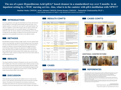 (CS-052) The use of a pure Hypochlorous Acid (pHA) based cleanser in a standardized way in an inpatient setting by a WOC nursing service. Also, what is in the canister with pHA instillation with NPWT?