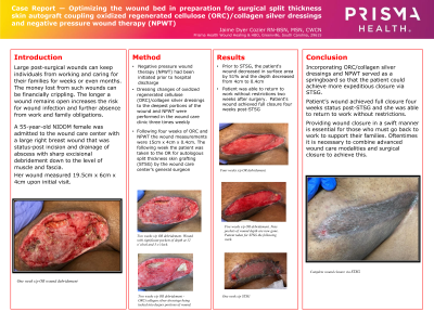 (CS-041) A Case Report ---Optimizing the wound bed in preparation for split thickness autograft coupling oxidized regenerated cellulose (ORC)/collagen silver dressings and negative pressure wound therapy.