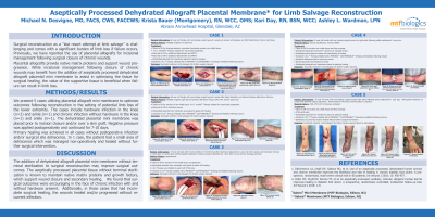 Introduction: Surgical reconstruction as a “ last resort attempt at limb salvage” is challenging and comes with a significant burden of limb loss if failure occurs. Previously, we reported the use of placental allografts for incisional management following surgical closure of chronic wounds,