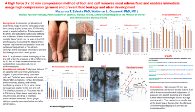 (CR-062) A high force 3 x 30 min compression method of foot and calf removes most edema fluid and enables immediate usage high compression garment and prevent fluid leakage and ulcer development