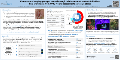 Discussion: These real-world findings of asymptomatic bacterial load/biofilm prevalence, and of the frequent treatment plan changes post-imaging, are in keeping with clinical trial findings on this technology. These data, from a range of wound types, facilities, and clinician skill sets, suggest that point-of-care FL-imaging information improves bacterial-infection management.